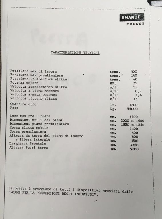 Prensa hidráulica tipo H Emanuel Dea 400/2000 fue fabricado por el fabricante de la máquina Emanuel. Máquina Emanuel Dea 400/2000 fue construida en 1982 año.